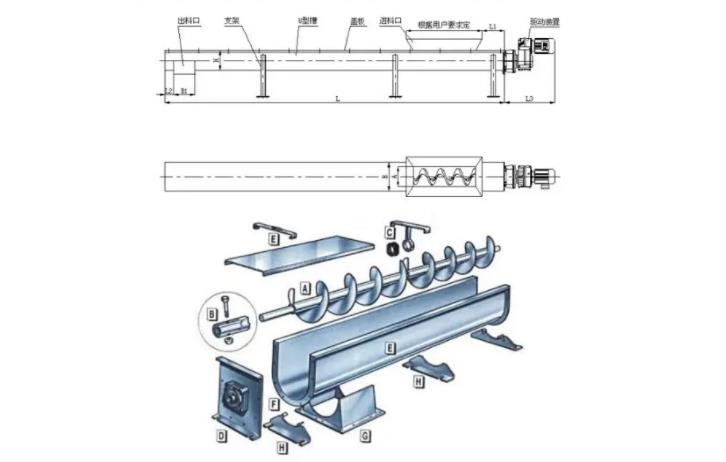 絞龍螺旋輸送機通過減速機帶動螺旋桿的旋轉,將輸送物料輸送到一定的水平距離,我司產品將頭部和尾部軸承安裝在殼體外部-延長軸承使用壽命。吊軸承采用滑動軸承設有防塵密封裝置,軸瓦一般采用粉末冶金,吊軸承和螺旋軸采用滑塊連接結構。
